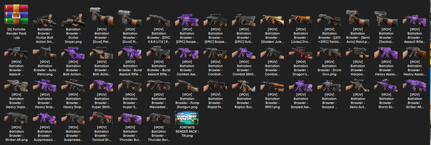 Access 50 custom captivating Fortnite FPS 3d Renders as shown in the preview!