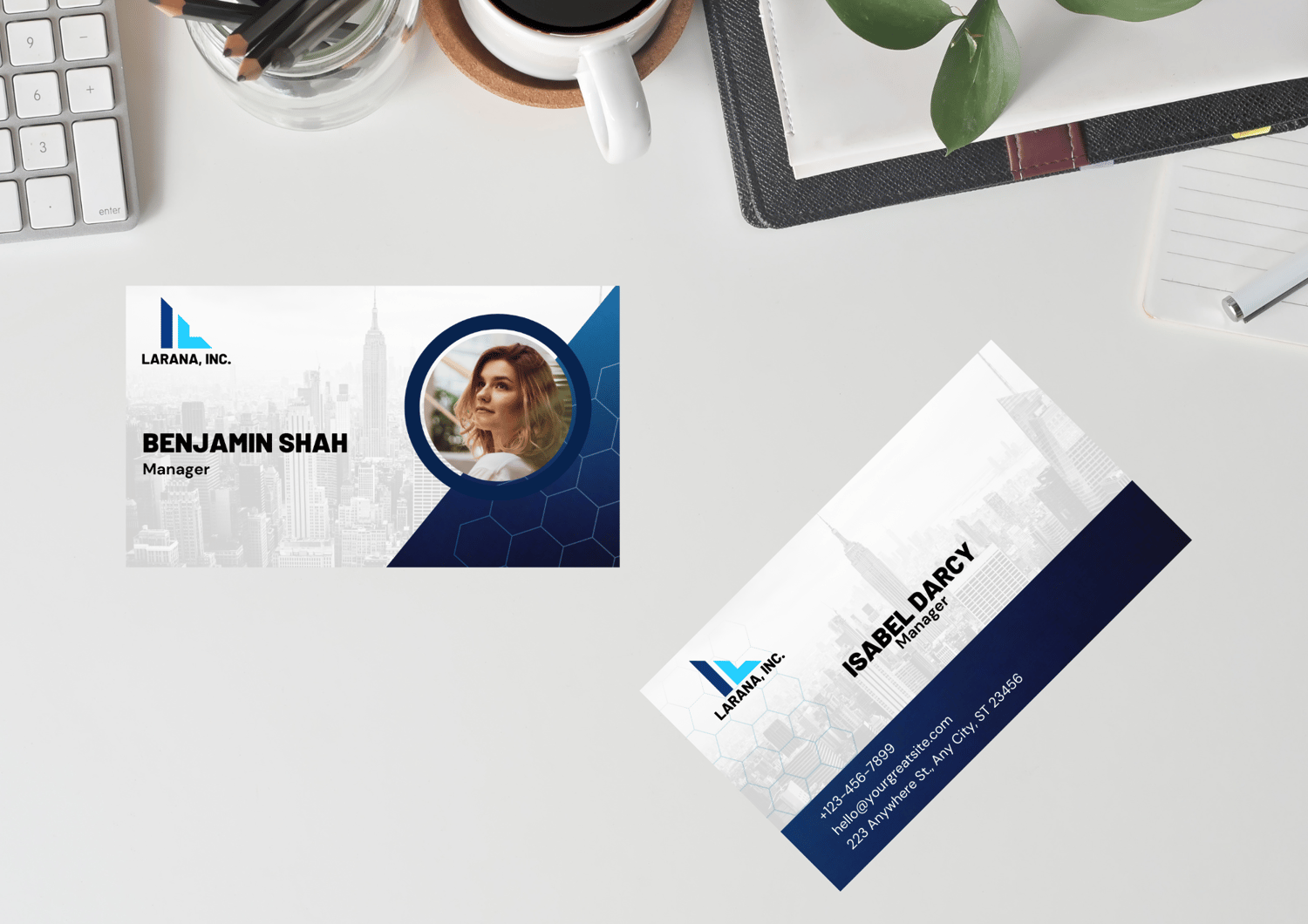 Are you looking for a FREE modern and elegant business card design template? Look no further than our blue photo manager Business Card! This sleek and minimalist design is perfect for any corporate or small business that wants to convey a modern and professional image.