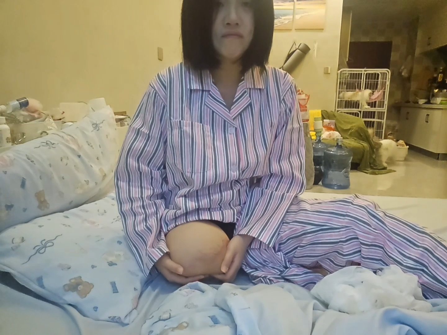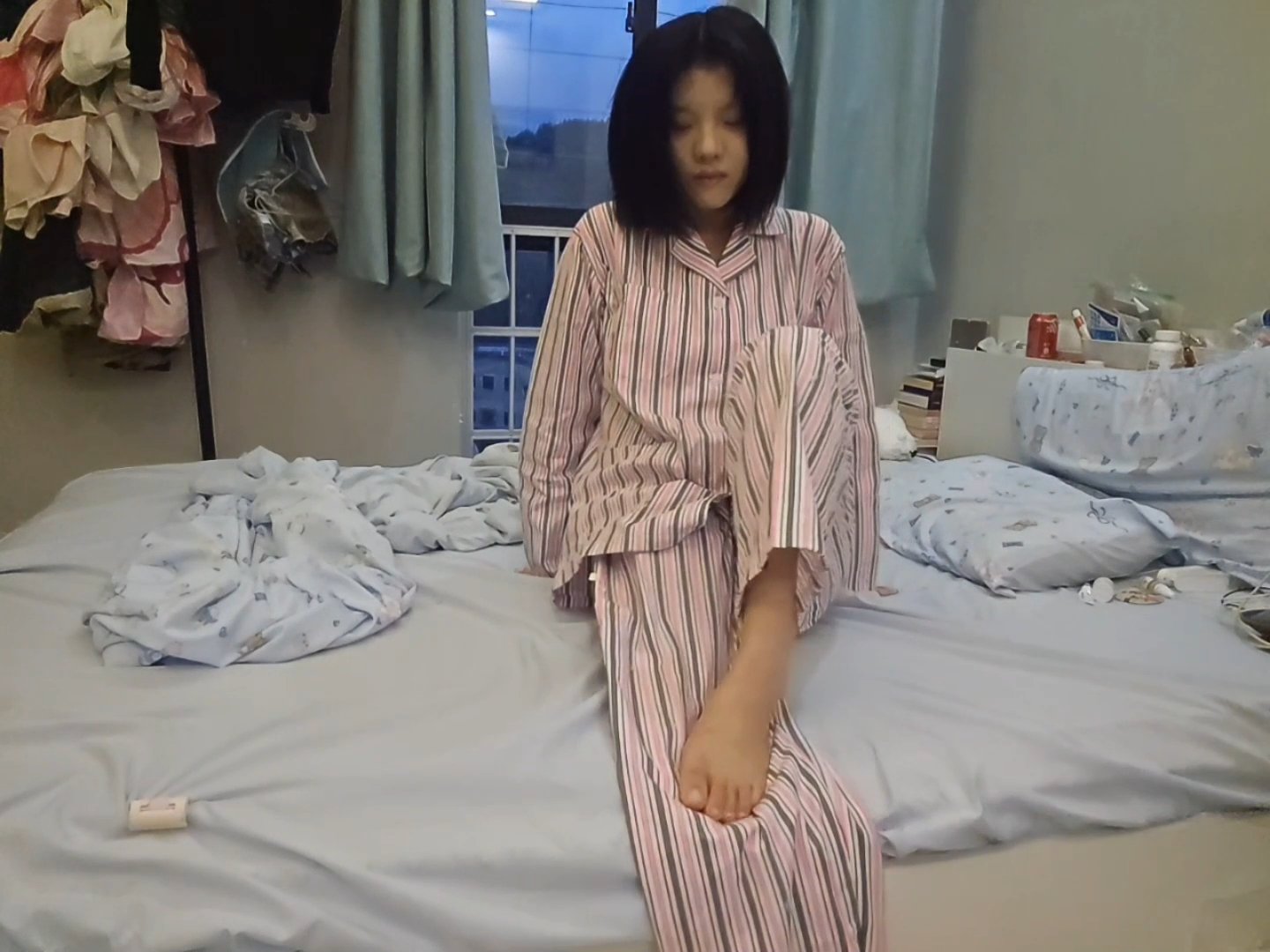 Lingo woke up with a start from a terrifying nightmare. While still gasping for breath and trying to calm herself down, she felt a sharp pain in her leg. When she touched her leg, she discovered that one of her legs had been amputated. This terrified her. (This is a scripted video carefully performed by Lingo; please enjoy watching.)