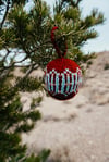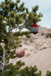 As a child I loved driving around the neighborhood looking at Christmas decorations. Seeing lights of all colors strung across rooftops, windows, and trees was a huge thrill. This ornament was designed with that in mind, and three contrasting colors give little pops of color similar to Christmas lights.