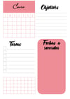 - Organización a semana vista ( diaria agrupada en dos hojas :de lunes a miércoles en una y el resto de la semana en otra)