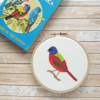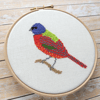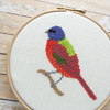 A counted cross stitch pattern of a painted bunting, a colourful bird from North America. This is one of four colourful buntings available for your stitching pleasure.