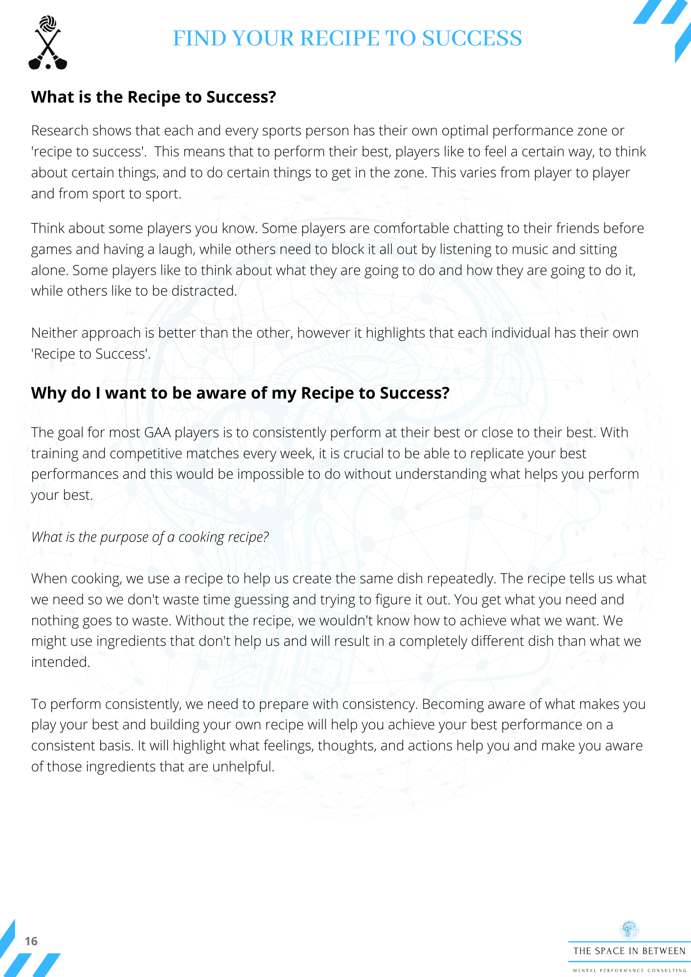 - Has been created spcifically for GAA players meaning you can apply the information and tools in this booklet to your performance immediately.