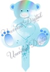 Teddy Bear grave marker design in blue, pink, lilac and grey to fit the blanks from Woodform Crafts, with space to add your own text.