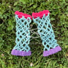 Candy-colored pink, light blue, and lavender yarn, and scallops on the top cuff add a pastel fantasy vibe to any outfit.