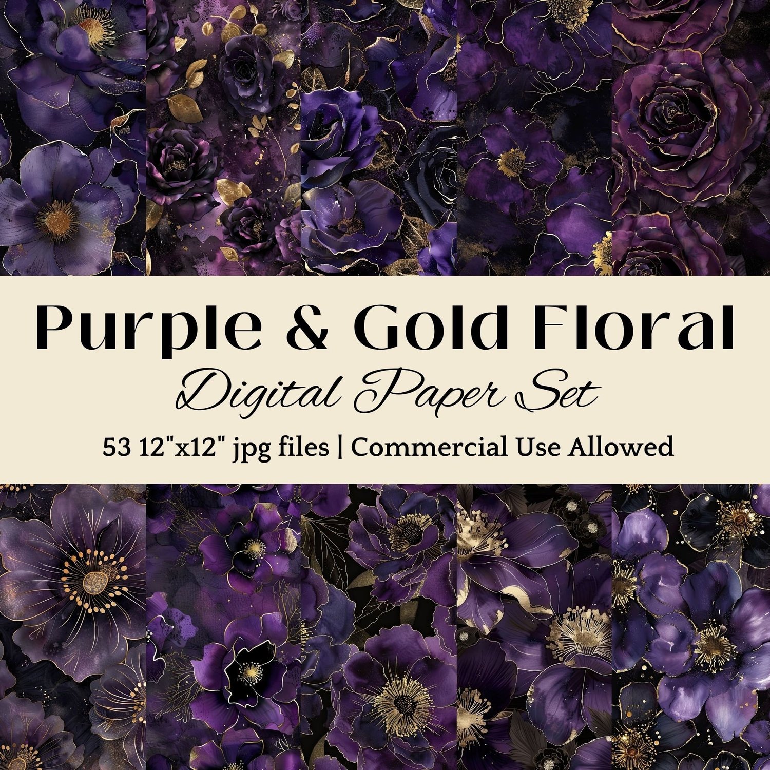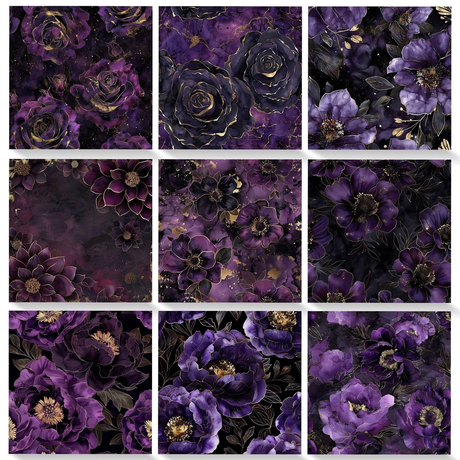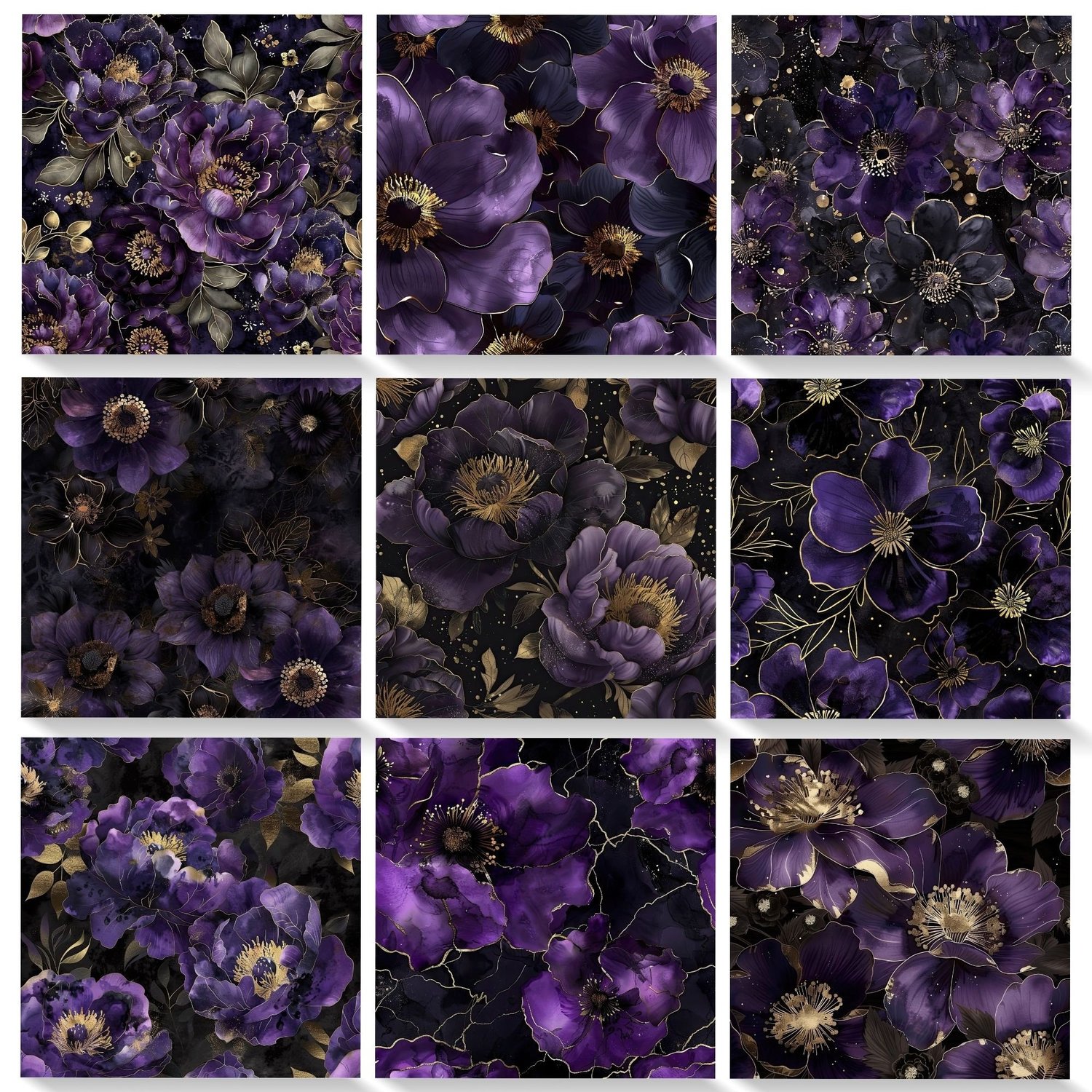 Purple, Black, & Gold Floral Digital Paper Set