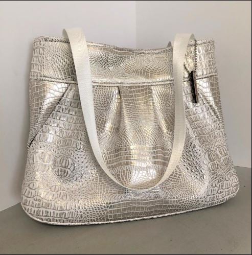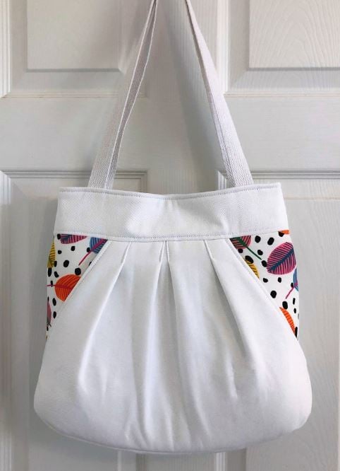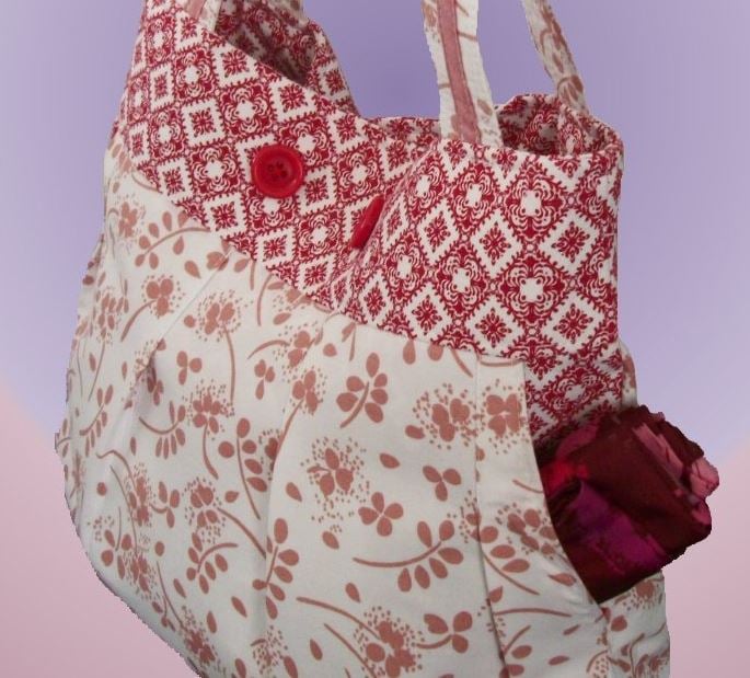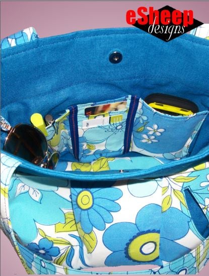 The Make it Yours Bag was so named for the variety of features that you have to choose from, that can result in several different variations on the finished bag. It is not difficult to make — even if you include all of the options — and can be mastered by an experienced beginner. I still love it for its simplicity and for the way that it has a place for everything that I need to carry. "Optioned out", it has three zippered pockets (two exterior, one interior), a big slip pocket, card slots, a cell phone pocket, pen slots and sunglasses loops.