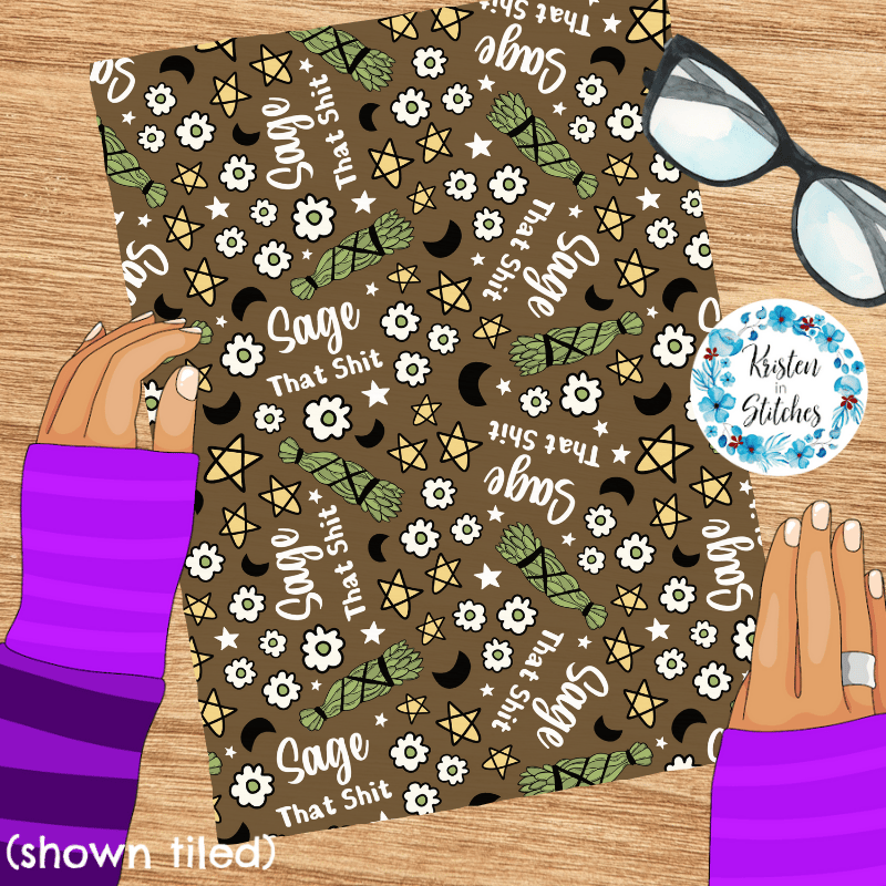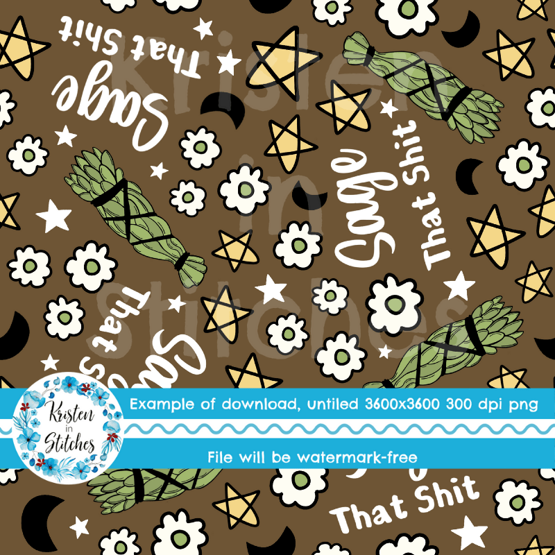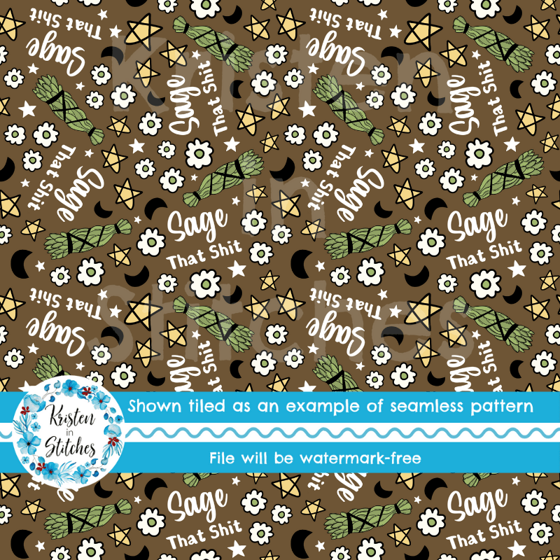 Sage that shit! Sage bundles, stars, flowers and moons on brown.