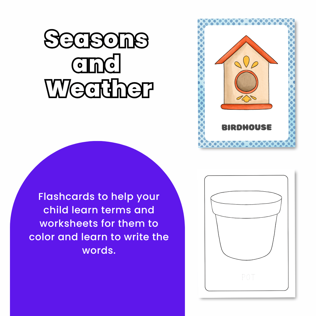 This Seasons & Weather Learning Pack is perfect for helping your preschooler or pre-kindergartener explore the world around them β from sunny summer days to snowy winter mornings! With over 180 printable pages, this set is filled with flashcards, worksheets, and activities that make learning about weather and seasons simple, hands-on, and fun.
