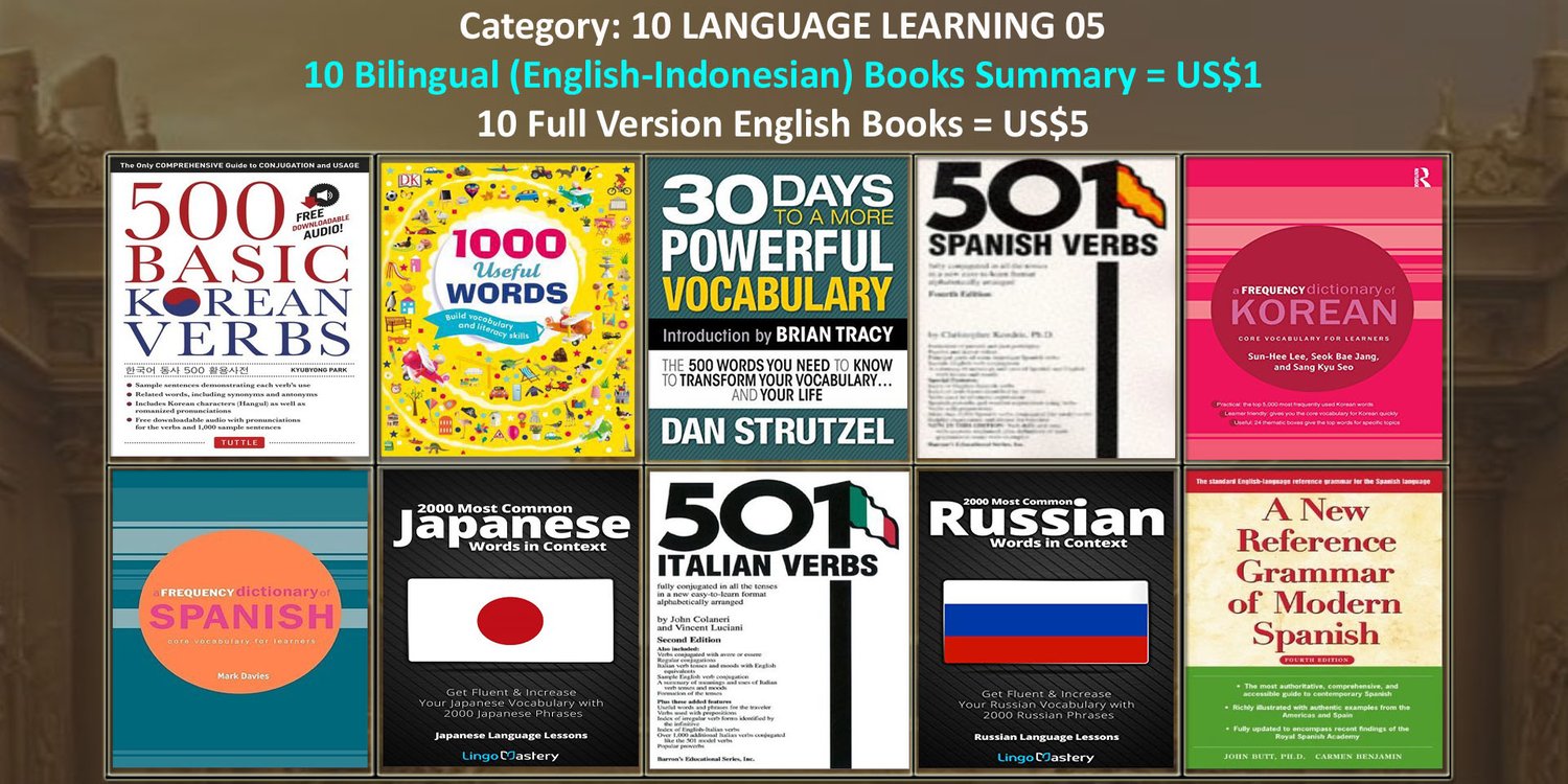 · Untuk 10 buku summary dalam 2 bahasa (English-Indonesian), hanya perlu 1 dollar saja, atau Rp.16.000,-