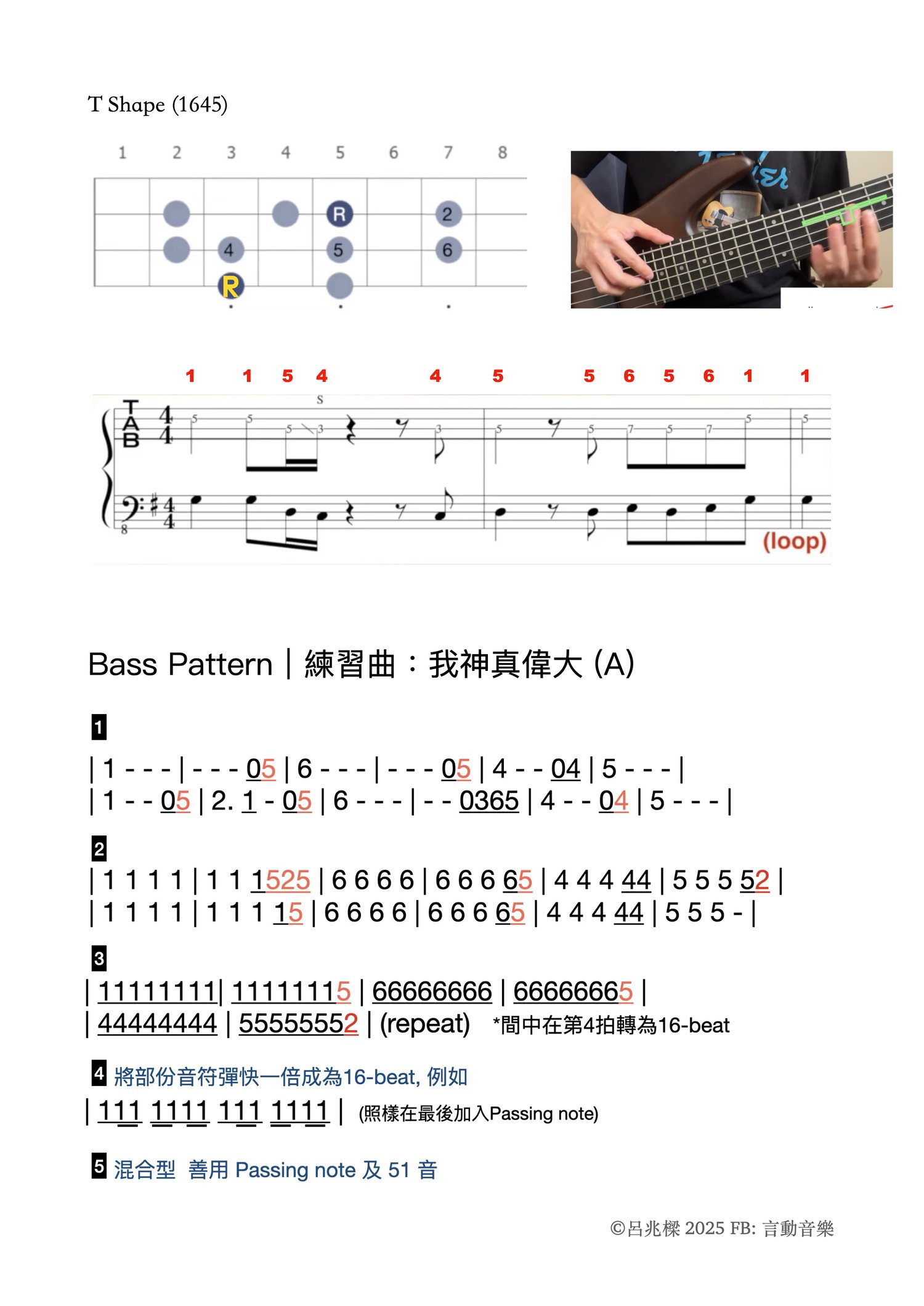 - 涵蓋 Bass 手最常用及基本的技巧與節奏