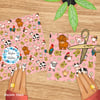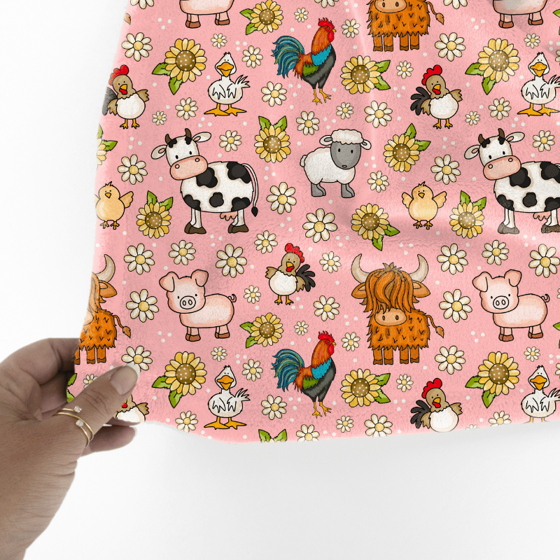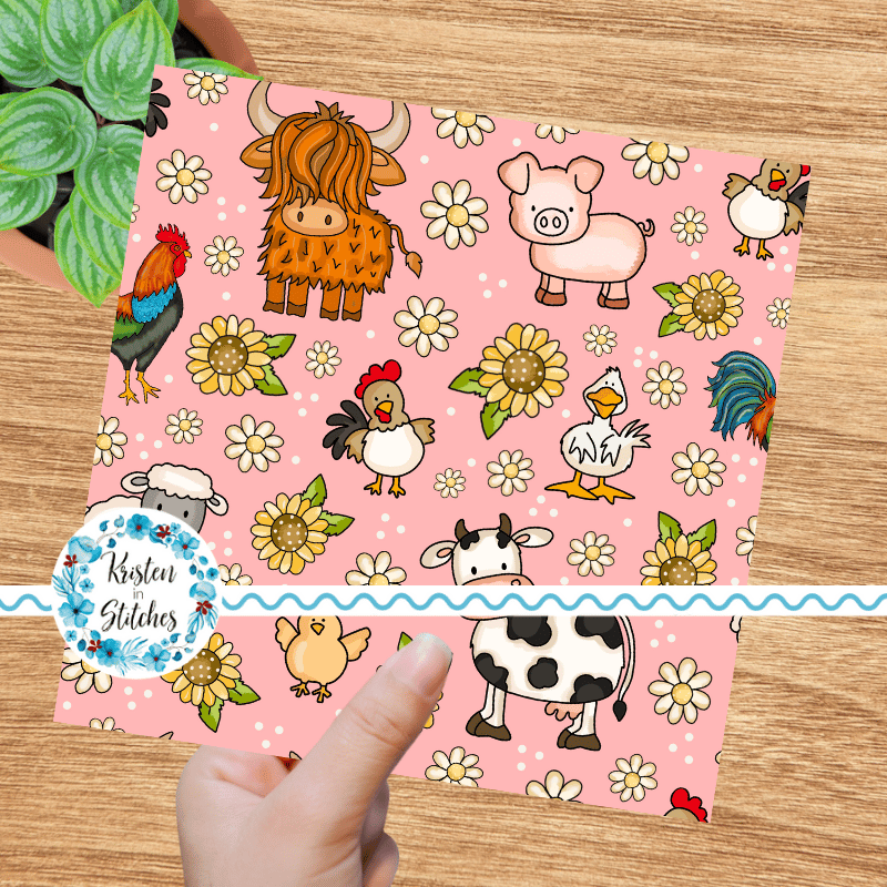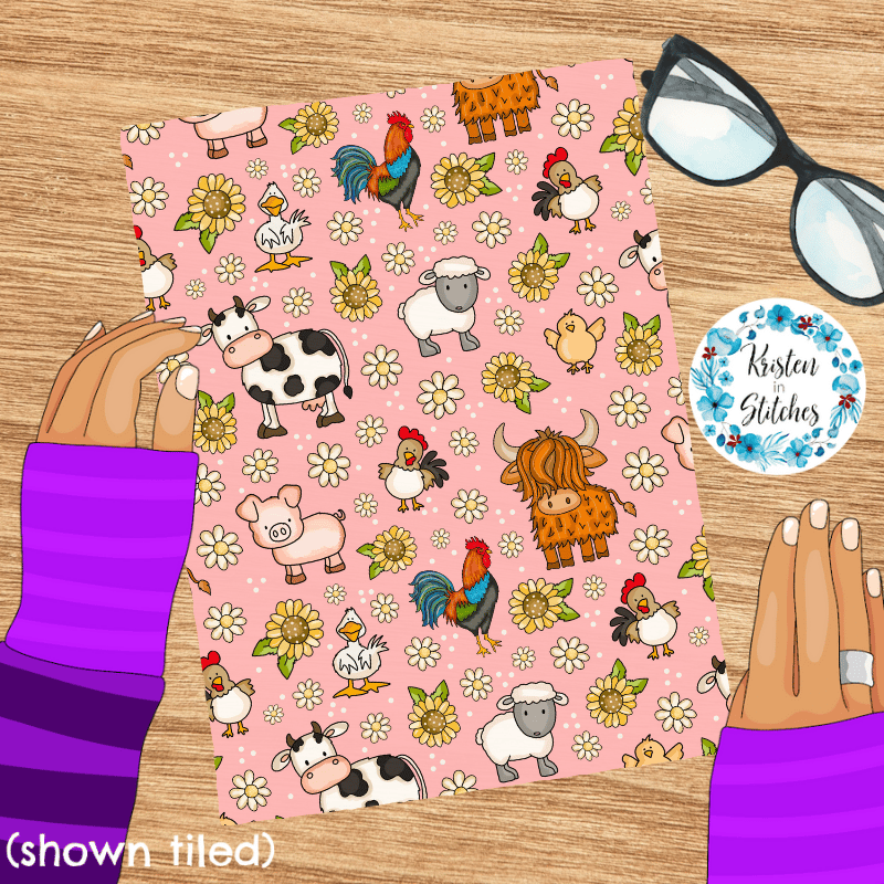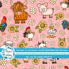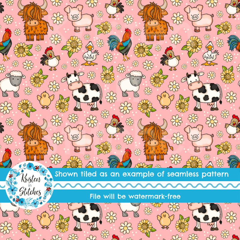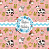 Farm Animals Seamless Pattern, Nursery Floral, Pink
