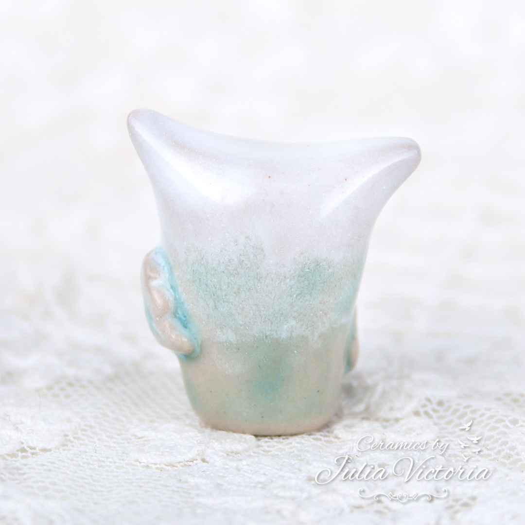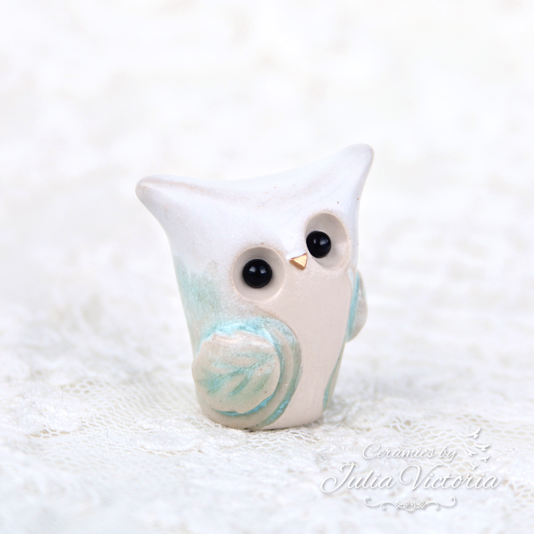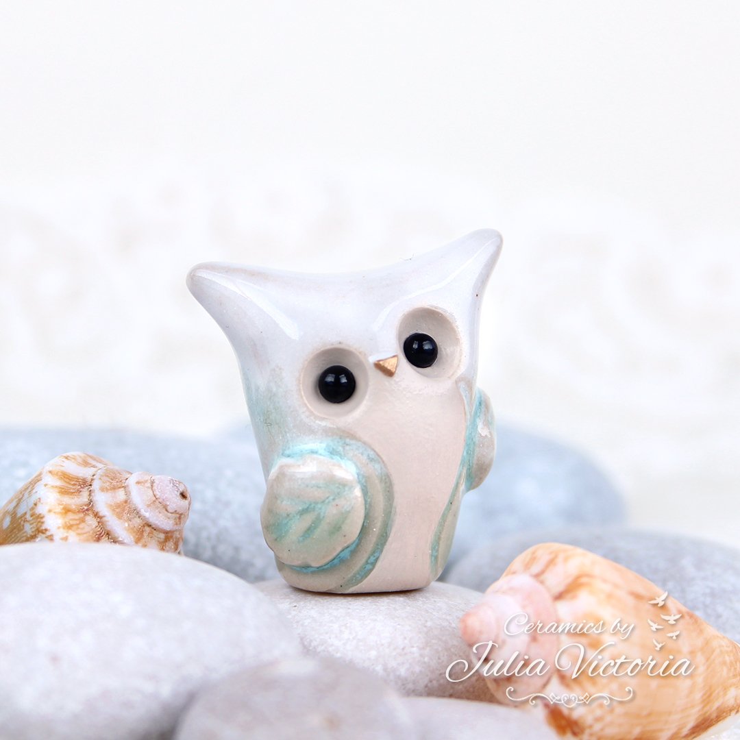 This little owl is looking for a new home. It is hand-sculpted in ceramics, glazed and painted by me