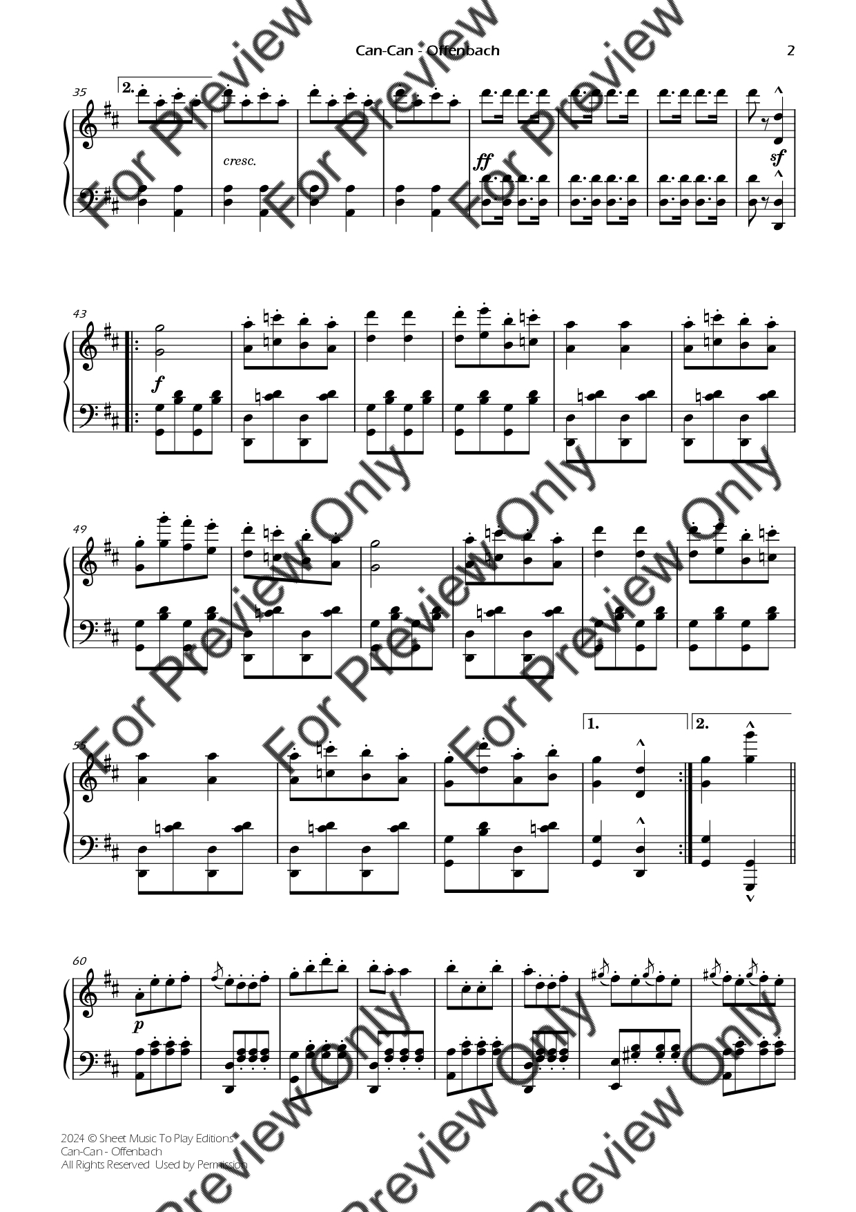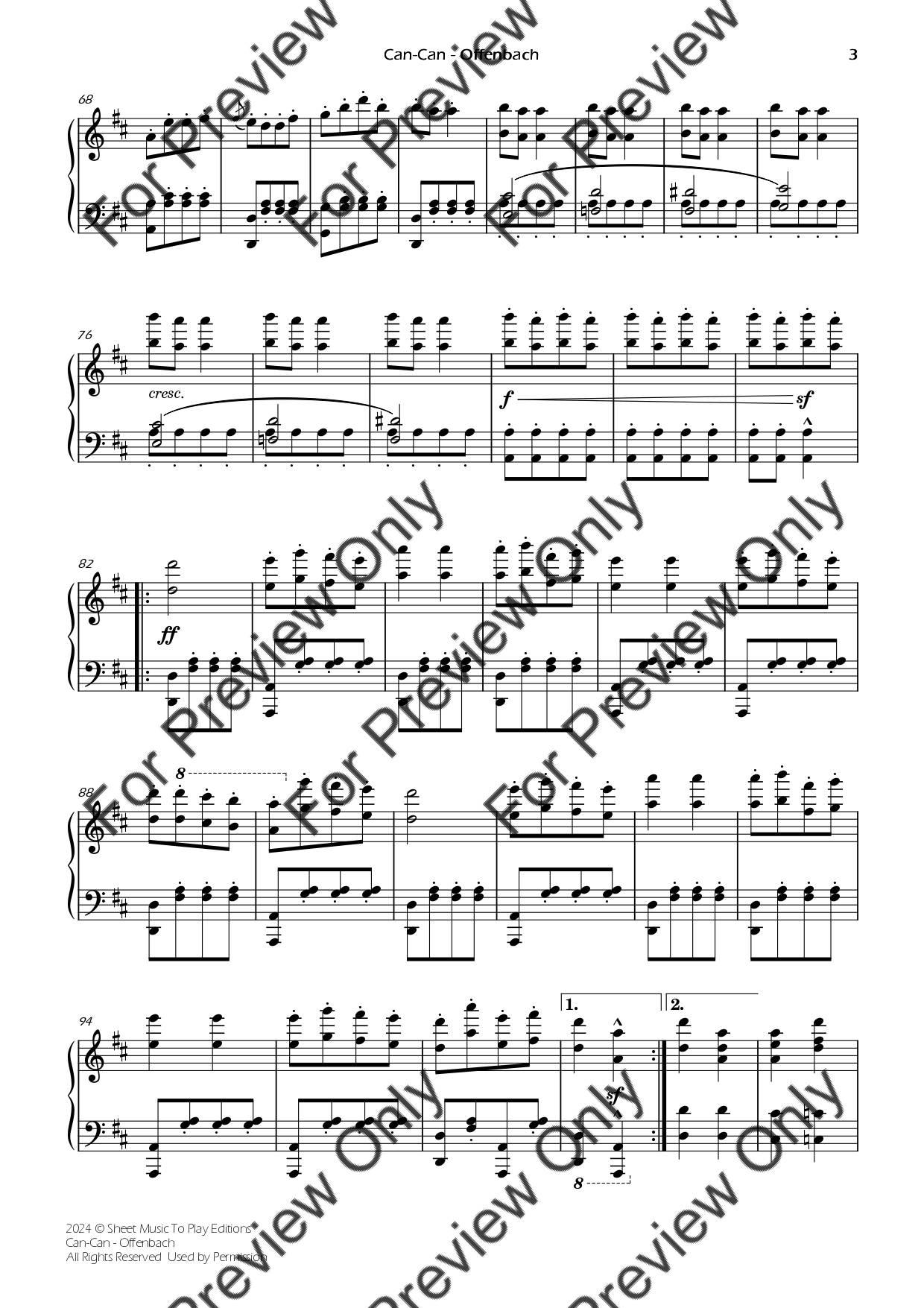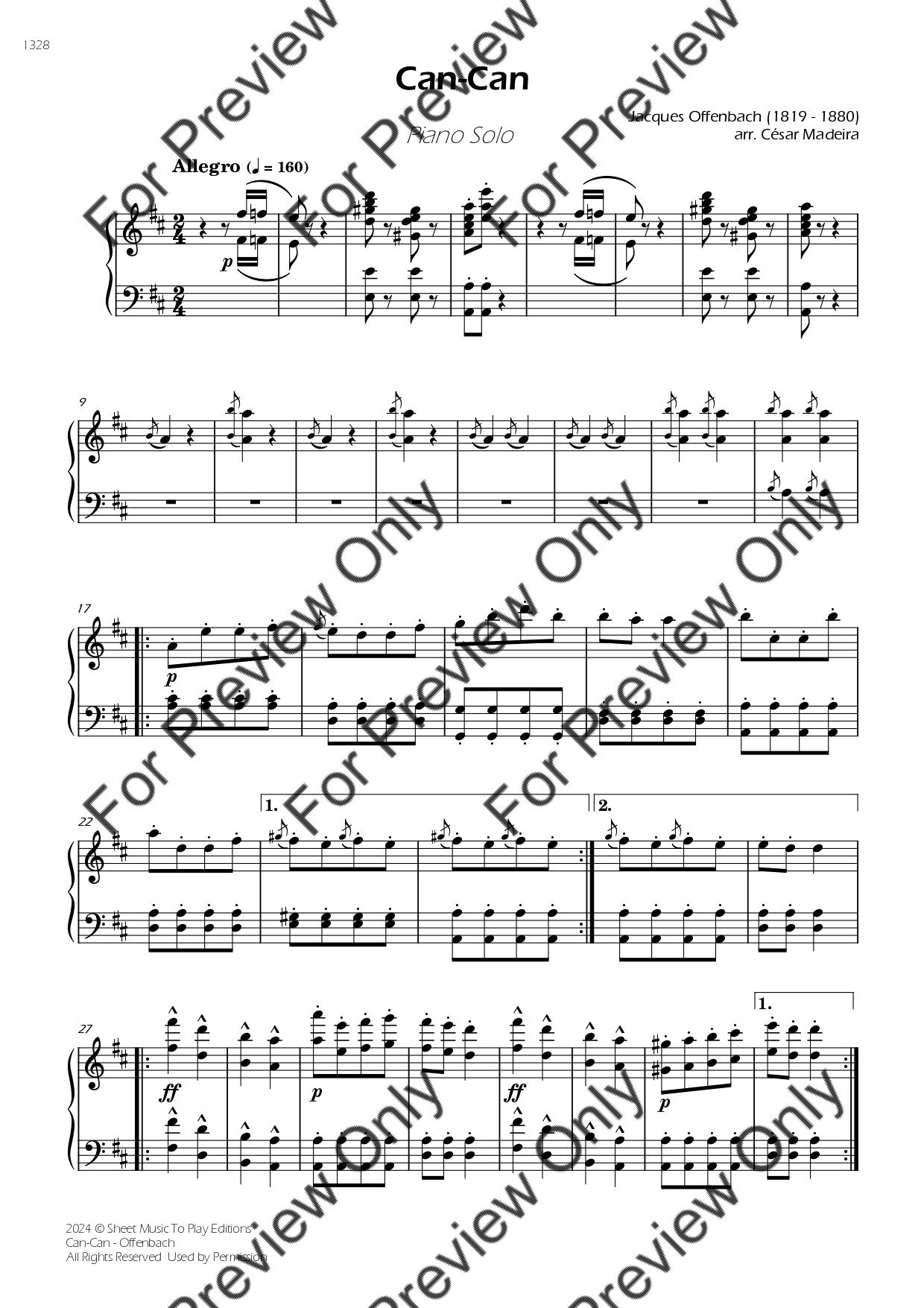 Can-Can by Jacques Offenbach. Arrangement for Piano Solo. With Full Score. Have fun!