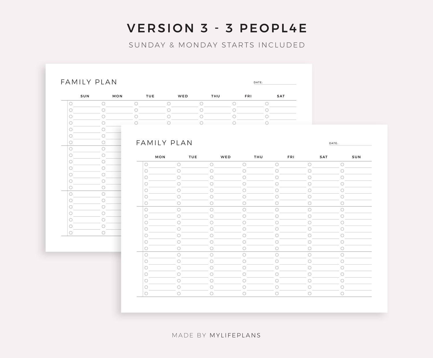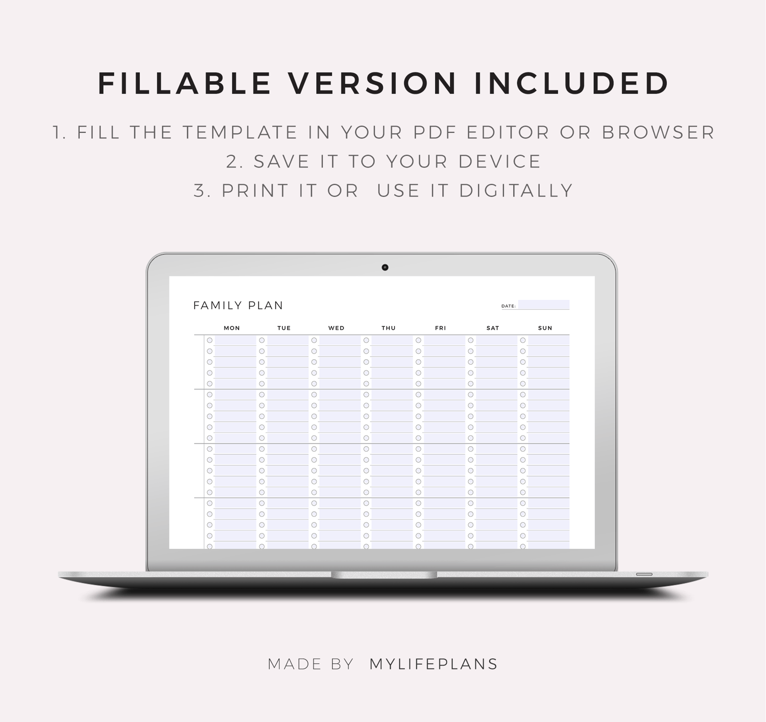 This is a printable weekly family planner — just download, print, and start using it right away.