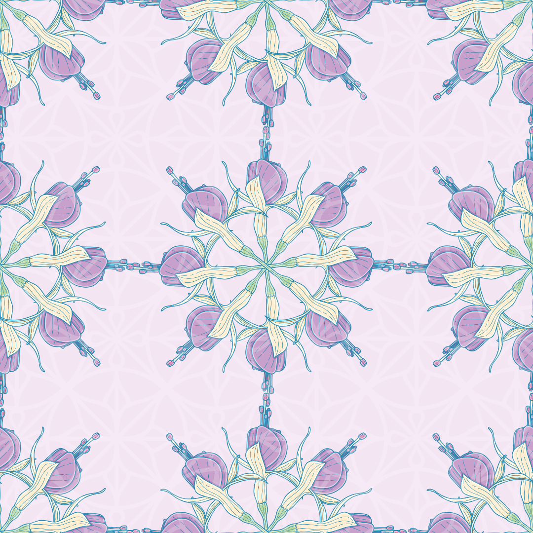 Fuchsia mandala vector repeating pattern. Floral medallion seamless illustration background.
