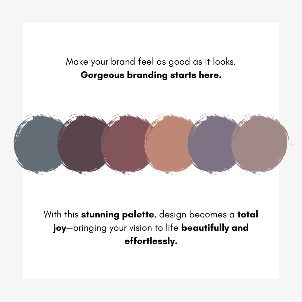 Embrace the cozy elegance of fall with our October Rain Color Palette, designed to infuse your brand with a touch of moody sophistication. This carefully curated selection of autumnal shades is perfect for creative entrepreneurs and small businesses looking to refresh their brand identity. Featuring a harmonious blend of charcoal blue, dusty plum, mauve, muted terracotta, dusty lavender, and taupe, this palette is ideal for both digital and print marketing materials.