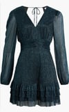 METALLIC LONG SLEEVE OPEN BACK MINIDRESS