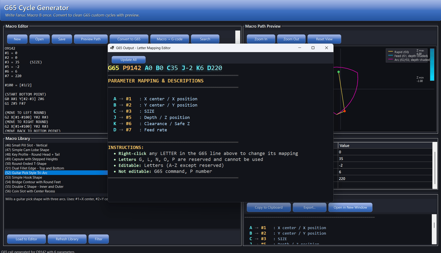 Unleash the full power of CNC automation with the G65 Cycle Generator — a powerful tool that transforms any existing macro program into a fully functional G65-style custom canned cycle.
