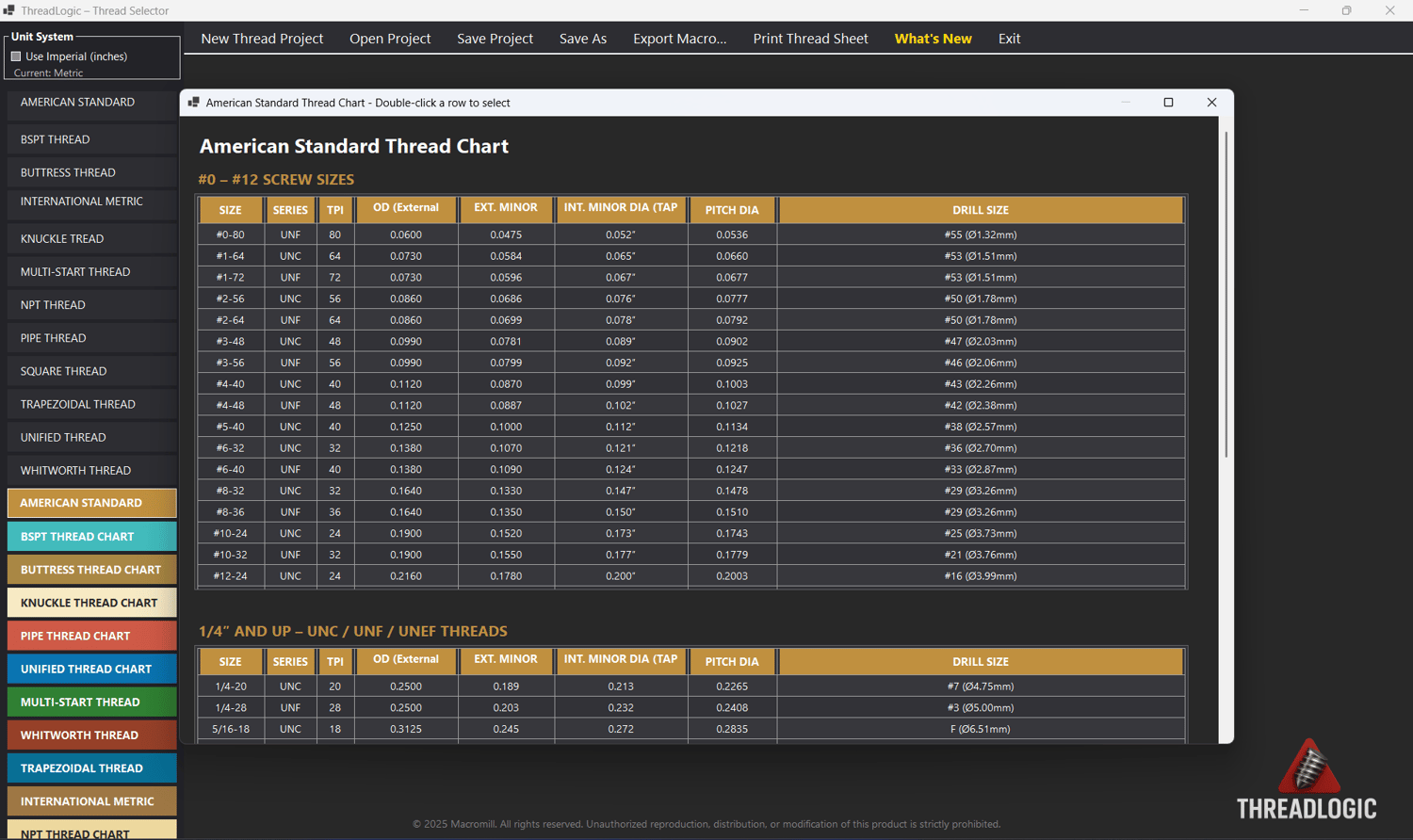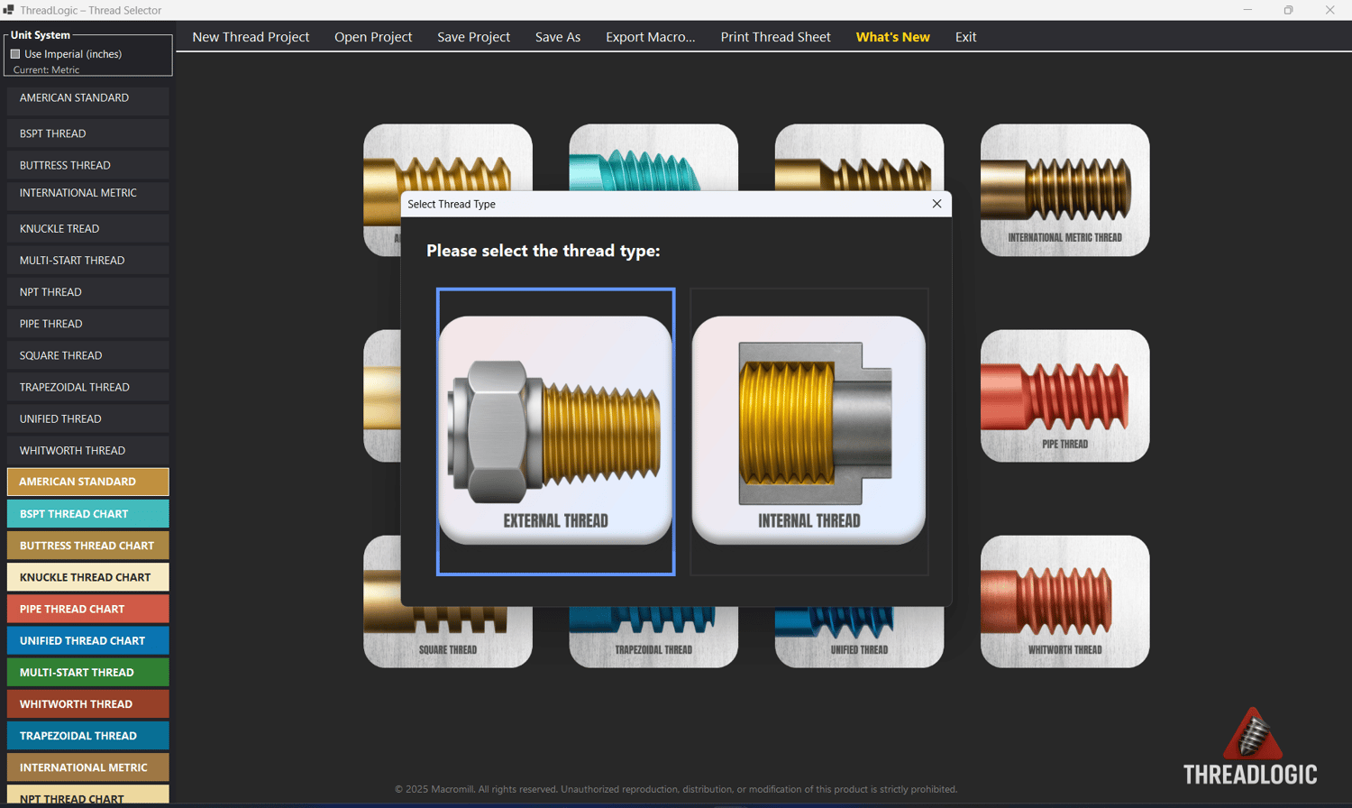 and ThreadLogic™ instantly generates the macro and all engineering values.