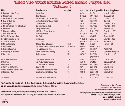 The demand for more hot releases continued. This time featuring the Savoy Havana Band, Stan Greening, Billy Cotton Fred Elizalde and Spike Hughes. It also features the very hot side 'Stomping' by Jimmy Wornell's band. This is very sought after on 78rpm and attracts high prices.