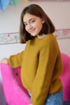 340 (390, 450, 485, 530) g / 680 (785, 895, 970, 1060) m / 745 (860, 980, 1060, 1160) yds, 7 (8, 9, 10, 11) skeins of Filcolana Peruvian Highland 100% pure wool, 136 mustard colourway, worsted weight, 50 g / 100 m / 109 yds per skein.