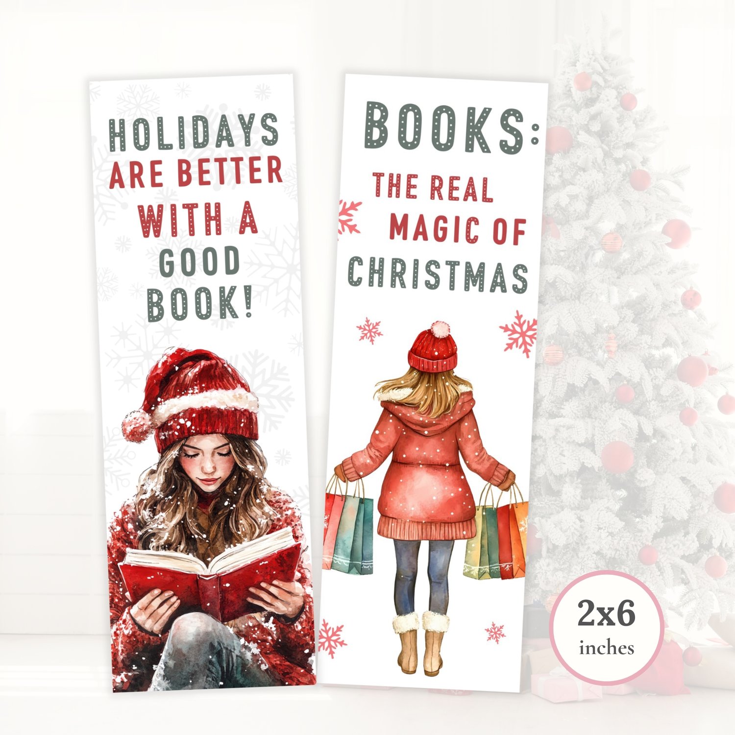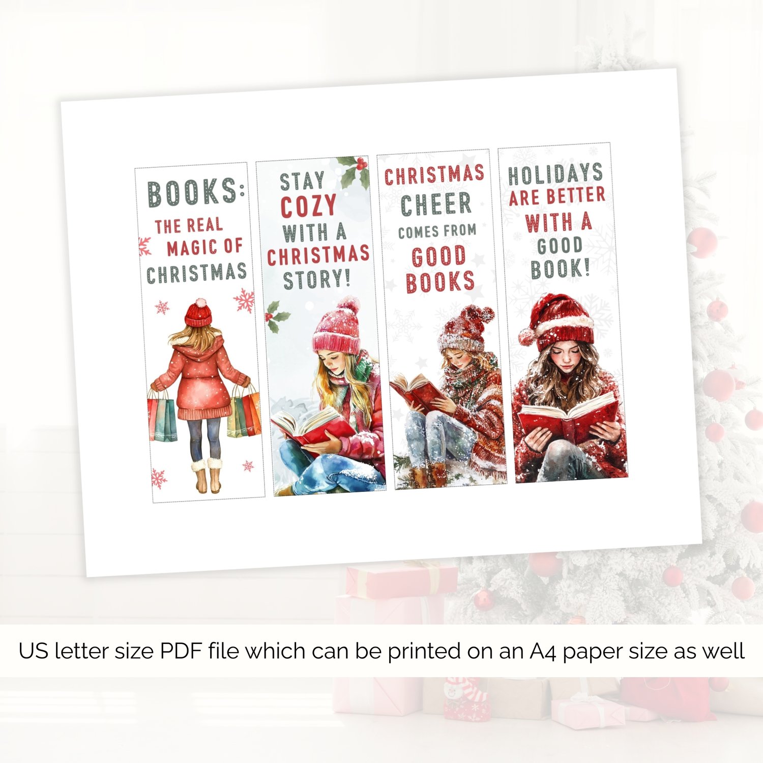 Printable Christmas Bookmarks, Gift for Book Lover, Bookmarks Set