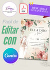 Invitación de Boda “Ella dijo Sí” Floral con Dibujo de Pareja en Acuarela | Plantilla Editable en Canva | PDF Instantáneo ✅