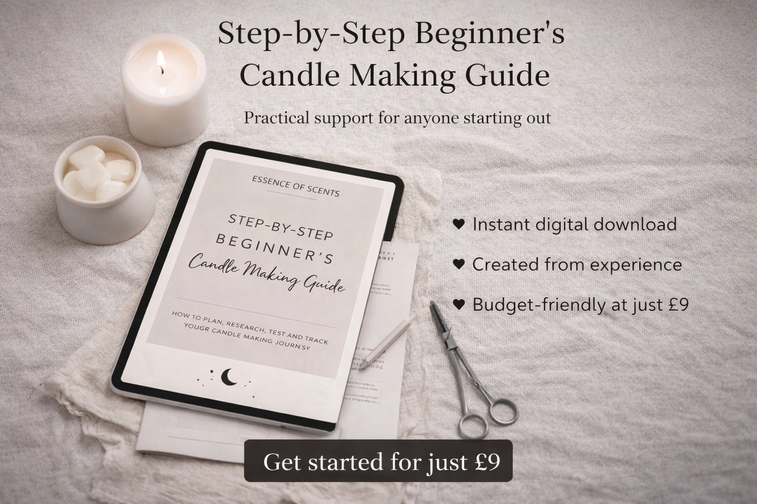 Created by Essence of Scents, a celestial-inspired luxury candle brand, this guide is designed to give you the knowledge you need to begin your candle-making journey safely, successfully and creatively.
