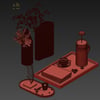 Coffee set 13 - tray pot cup books figurine bouquet pot