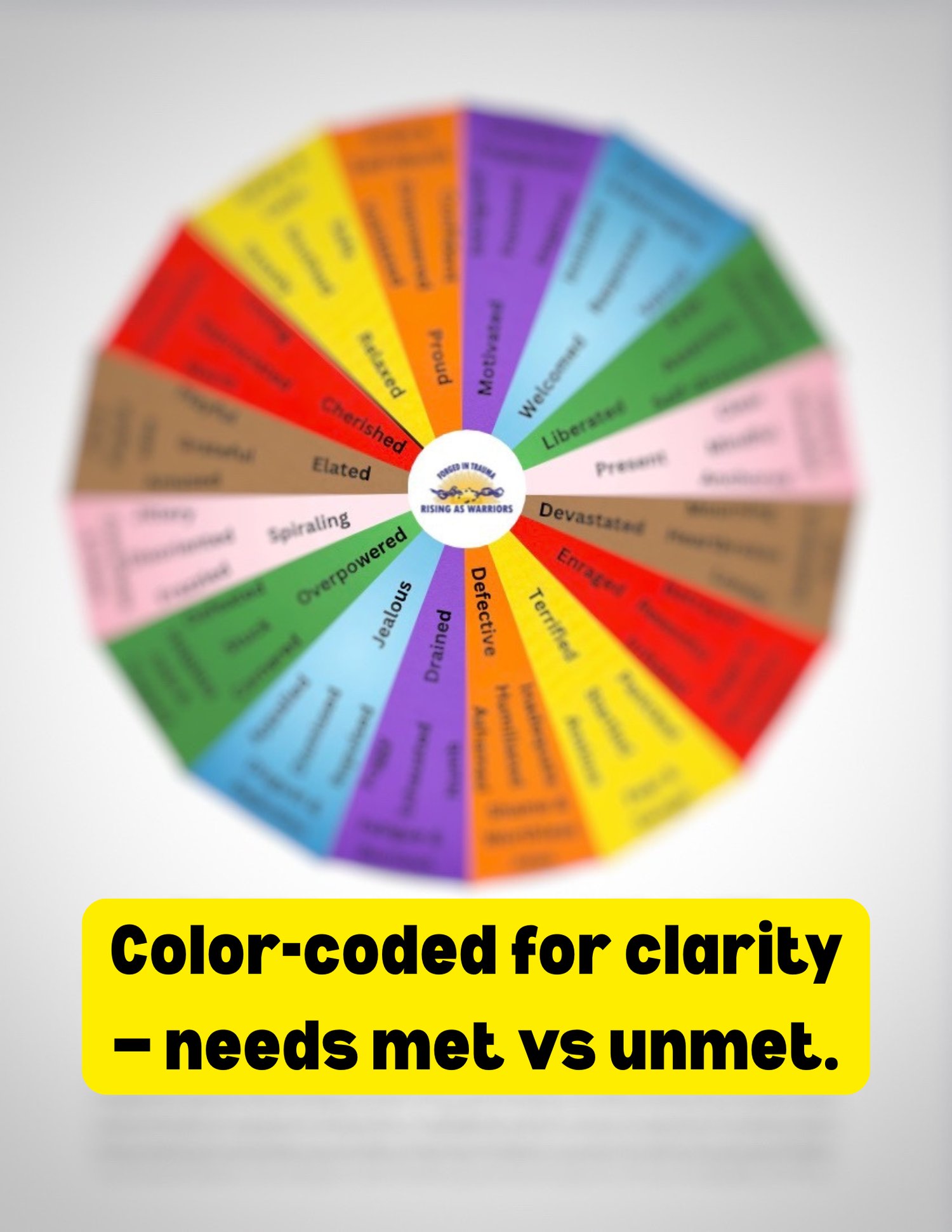 A simplified, color-coded system for identifying emotions and unmet needs — without the overwhelm of traditional wheels.