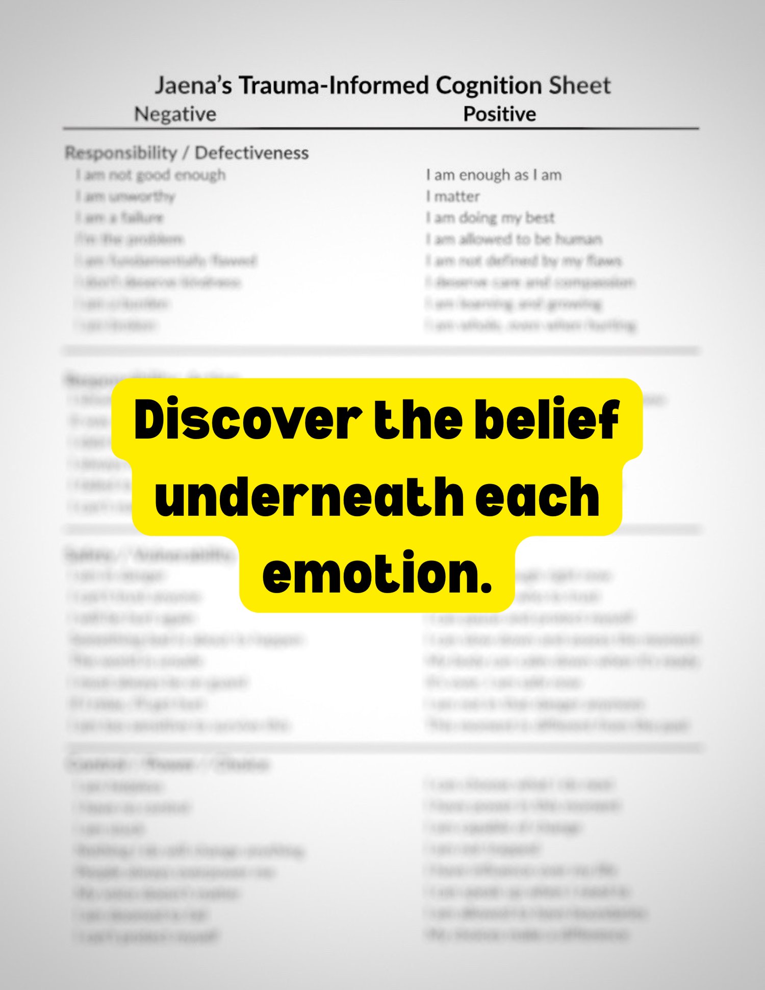 A trauma-informed map of the belief structures underneath your emotions. Originally designed for EMDR, now adapted for daily clarity + identity repair.