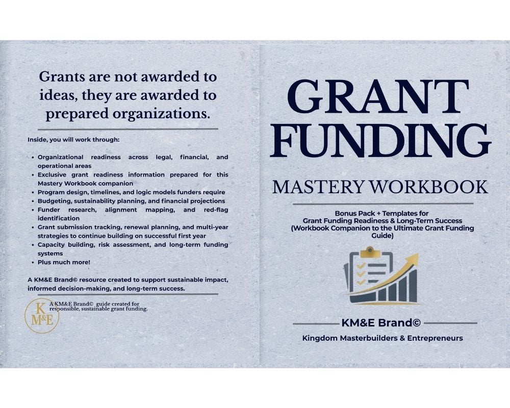 The Grant Funding Mastery Workbook is a comprehensive, hands-on companion designed to help organizations, consultants, and grant professionals prepare for funding the right way — with clarity, structure, and long-term sustainability in mind.