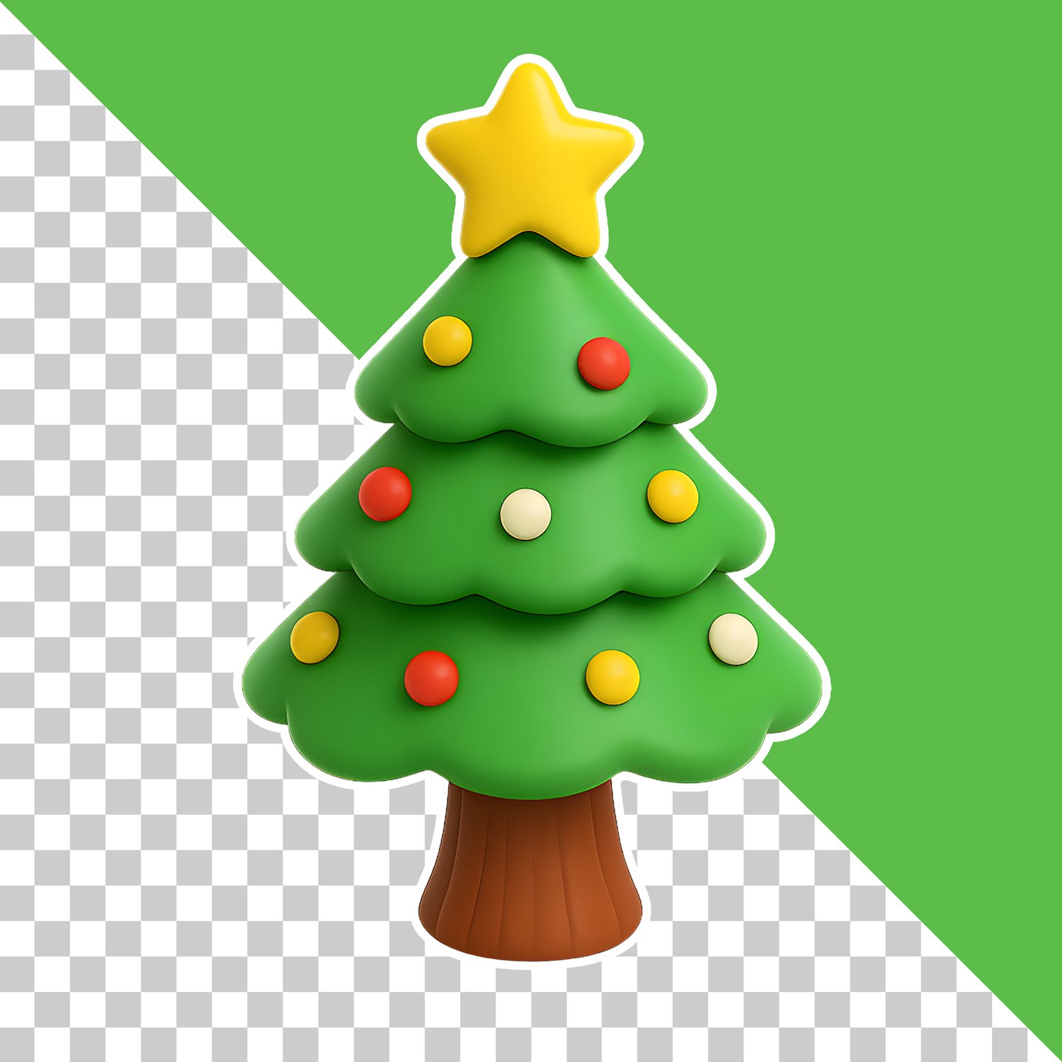 3D Christmas Tree Sticker with Transparent Background