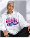 Bring the nostalgia back with this bold and playful “90’s Babe” retro graphic design. Featuring glossy bubble lettering in vibrant pink, purple, and blue gradients, this design captures the fun, confident spirit of the iconic 90s era.