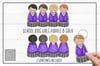 Welcome to this set of PEG DOLL SCHOOL GIRLS in Purple and Grey Uniform. You get a Peg Doll with different hair colours and a set of glasses to add if needed. As well as a rear view. These come in 3 skin tones Fair, Medium and Dark. These are designed to fit the Peg Doll Blanks which make perfect keyrings and bag tags for children returning to school but are also great for other projects such as cards, cushions and mugs and water bottles too. These are high resolution 300 DPI files. Thanks as always for looking.