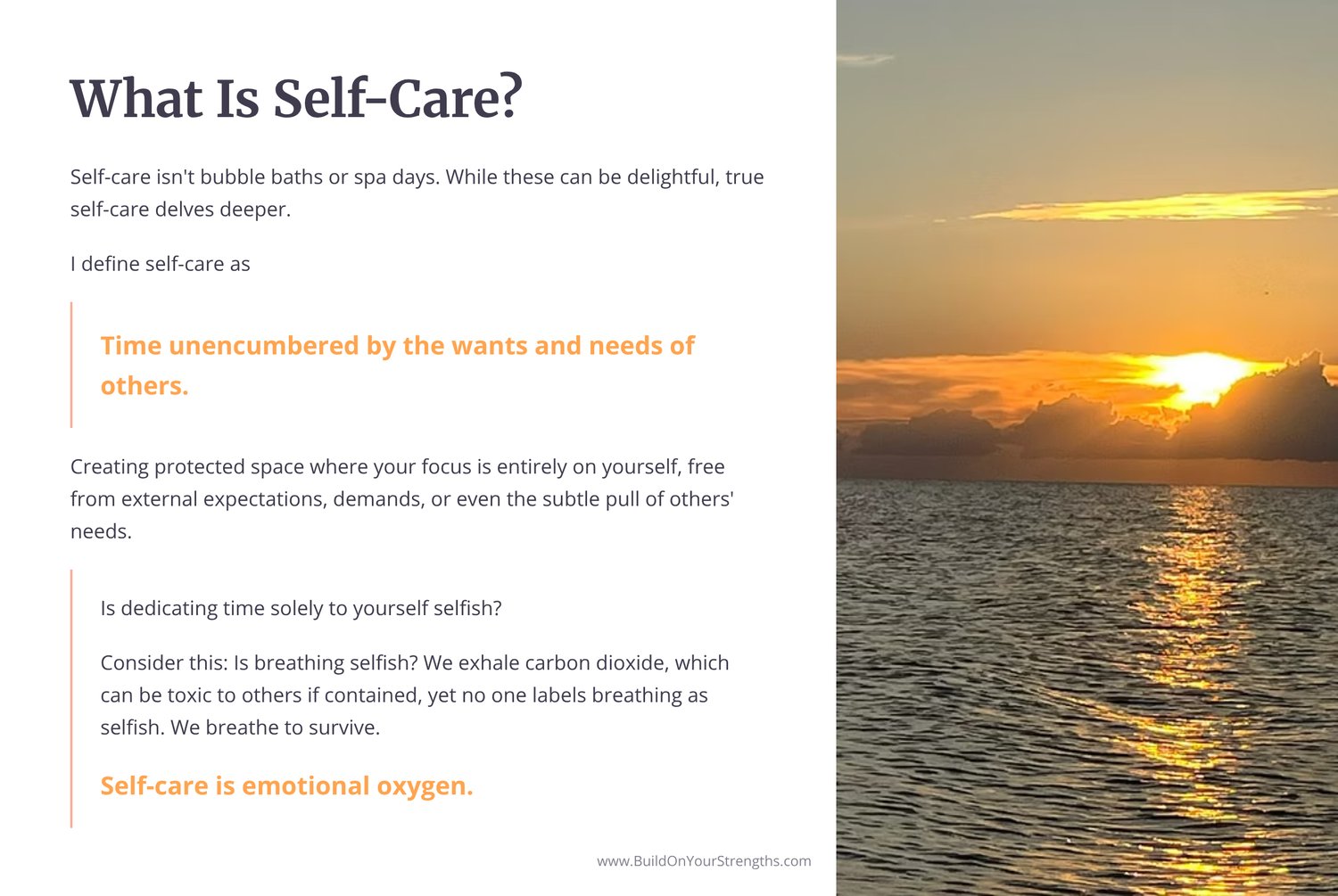 * A fresh way of defining self-care: time unencumbered by the wants and needs of others
