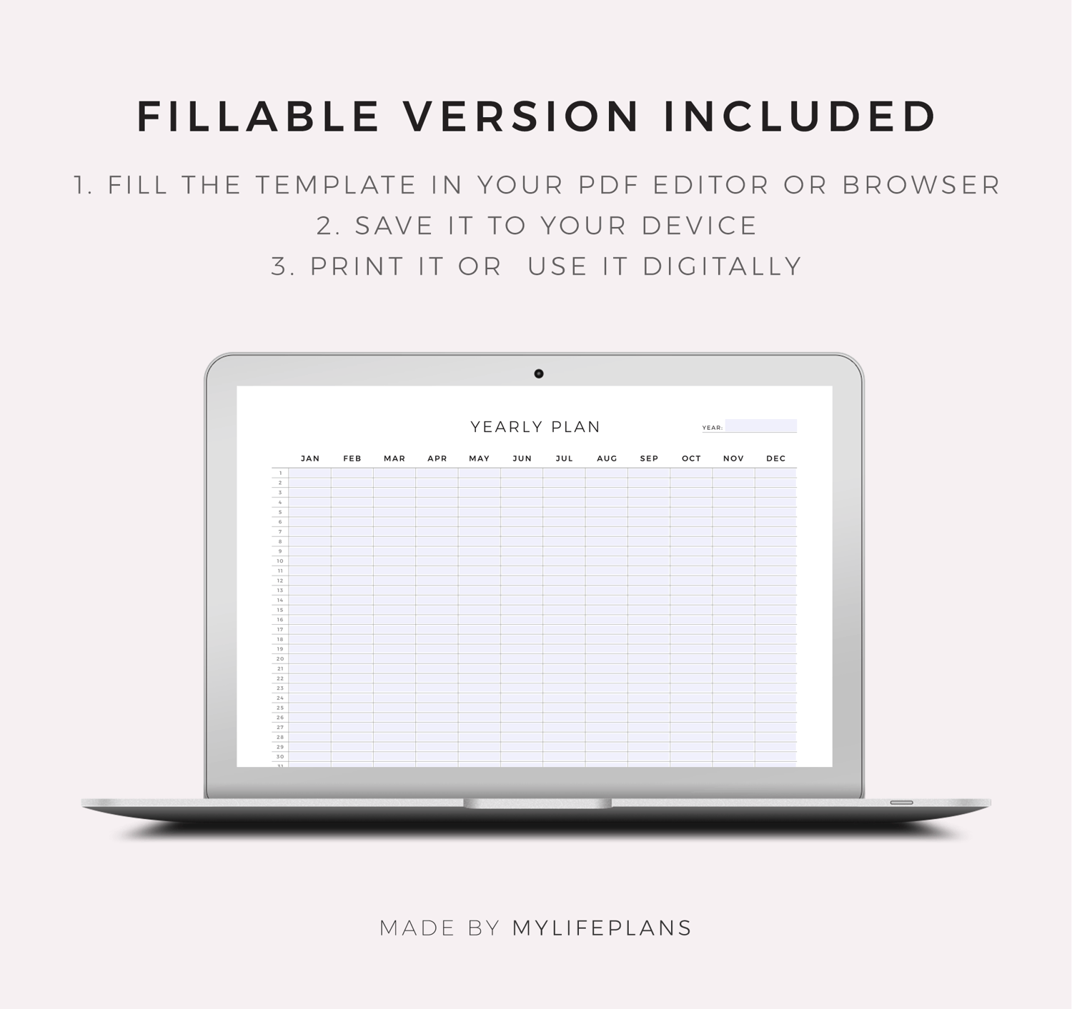This is a printable yearly planner on one page — just download, print, and start using it right away.