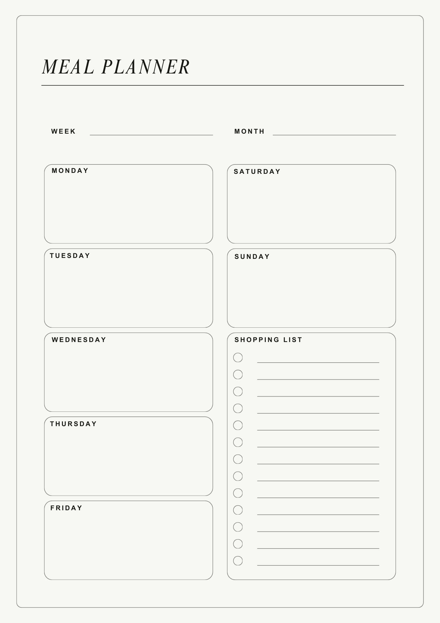 - Better Nutrition: Plan and prepare nutritious meals with our weekly meal planning sections. Take control of your diet and ensure you’re fueling your body with the right nutrients.