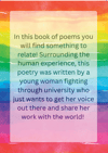 In this book of poems you will find something with which to relate! Surrounding the human experience, this poetry was written by a young women wanting to share her voice with the world.