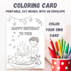 Add a personal touch to your greeting card for a birthday boy with this coloring birthday card! This card is a fun and creative way to show you care. You can color it with your favorite markers or colored pencils and inside is blank, allowing you to write your own heartfelt message to your loved ones.