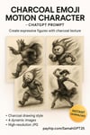 Turn simple emojis into expressive, full-body characters drawn in a dramatic charcoal sketch style — full of motion, emotion, and raw energy.