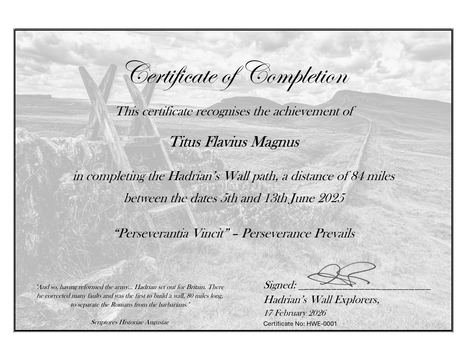 Celebrate Your Hadrian’s Wall Achievement: A Custom Certificate of Completion! 🏛️🥾