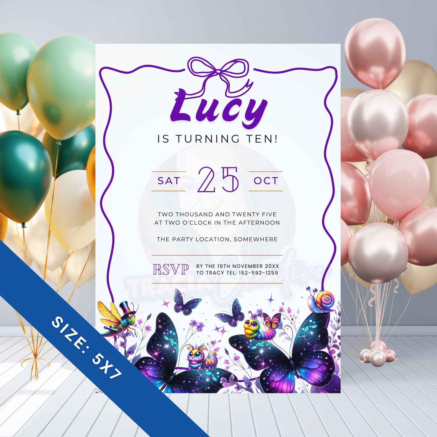 Celebrate your pre-teen's special day with our stunning Purple Butterfly Birthday Invitation!