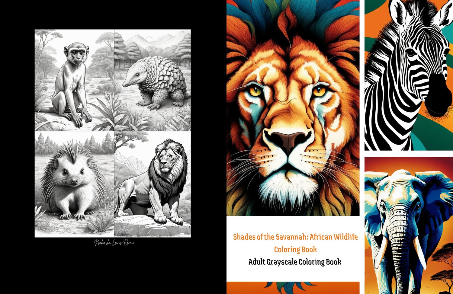 "Shades of the Savannah: African Wildlife Grayscale Coloring Book"