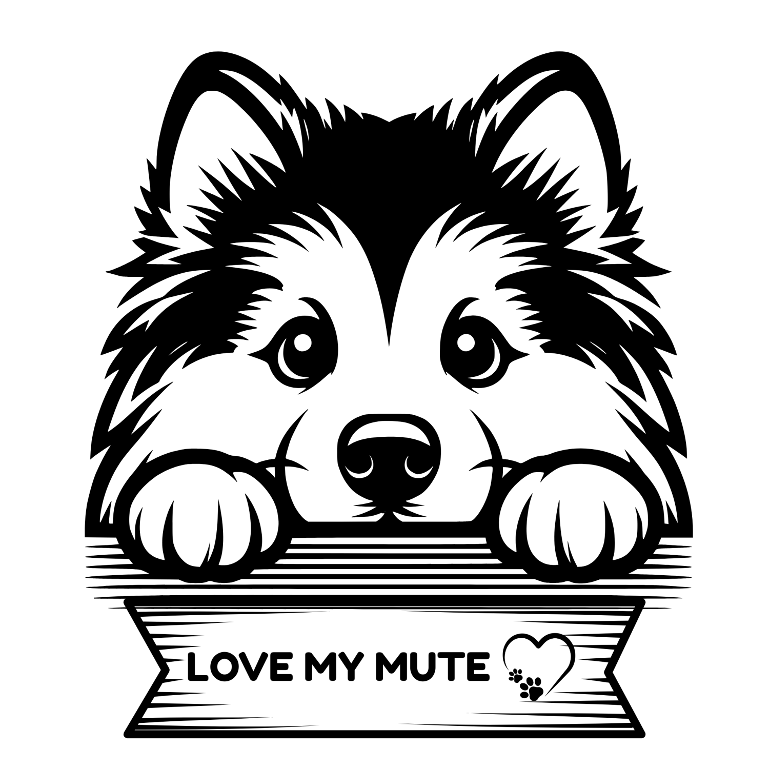 Show off your love for the majestic Alaskan Malamute with this bold “Love My Mute” banner-style peeking dog design! Perfect for car decals, mugs, tote bags, T-shirts, wall art, and more. This versatile design works with Cricut, Silhouette, and other cutting machines — or print it as high-quality art.