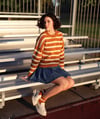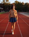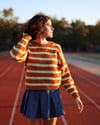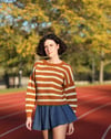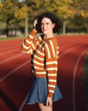 The pep rallies have begun, a chill has entered the air, the season of studying, football games, pumpkin patches and SPIRIT WEEK is finally HERE. Spirit Week Stripes is a drop sleeve sweater knit from the top down with short row shaping for the shoulders, simple striping, and a relaxed fit.