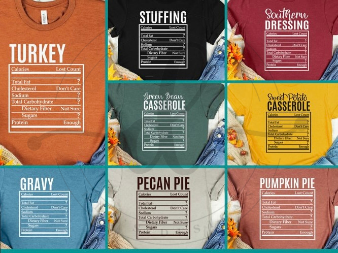 Bring the laughter straight to the dinner table with our second edition of the Holiday Nutrition Label T-Shirt Bundle!Perfect for Thanksgiving and cozy holiday gatherings, these witty “nutrition facts” designs capture the true spirit of the season, no calorie counting allowed!