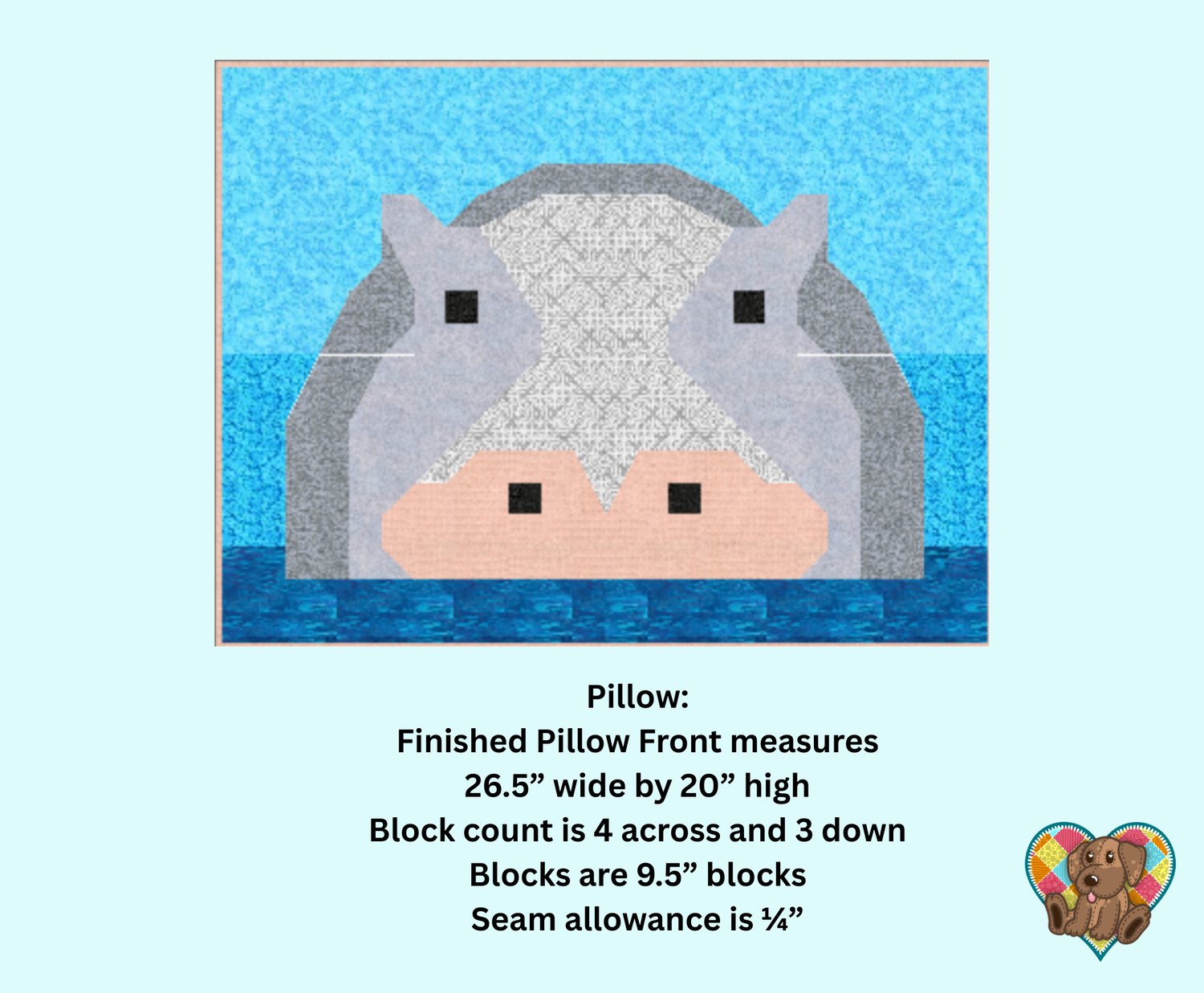 Hippo Pillow Sham Quilt Front Pattern