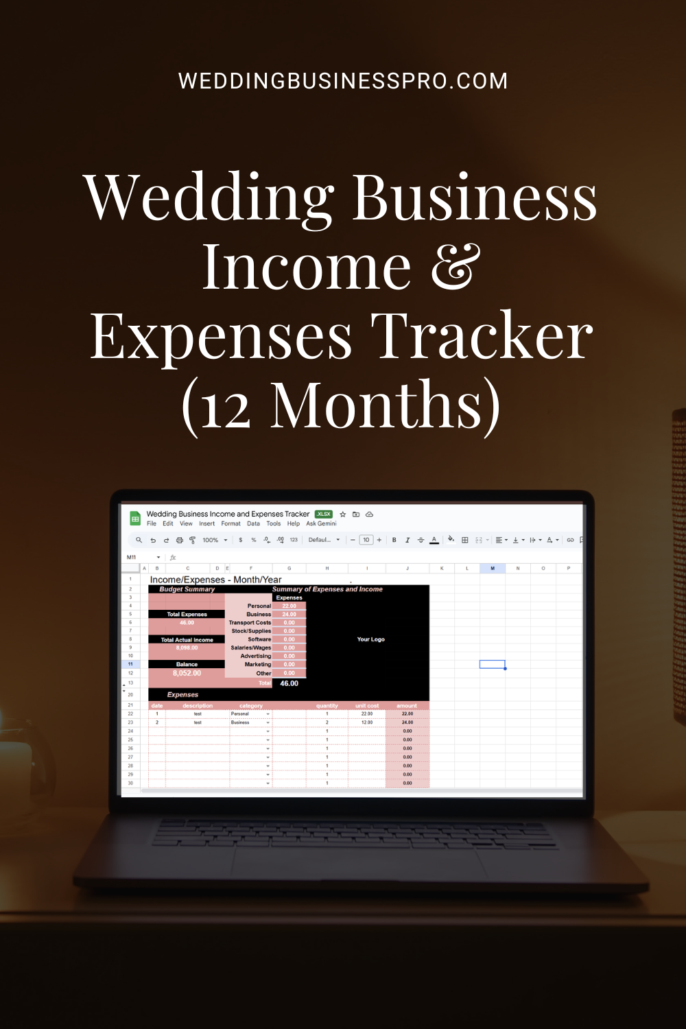 Wedding Business Income & Expenses Tracker
